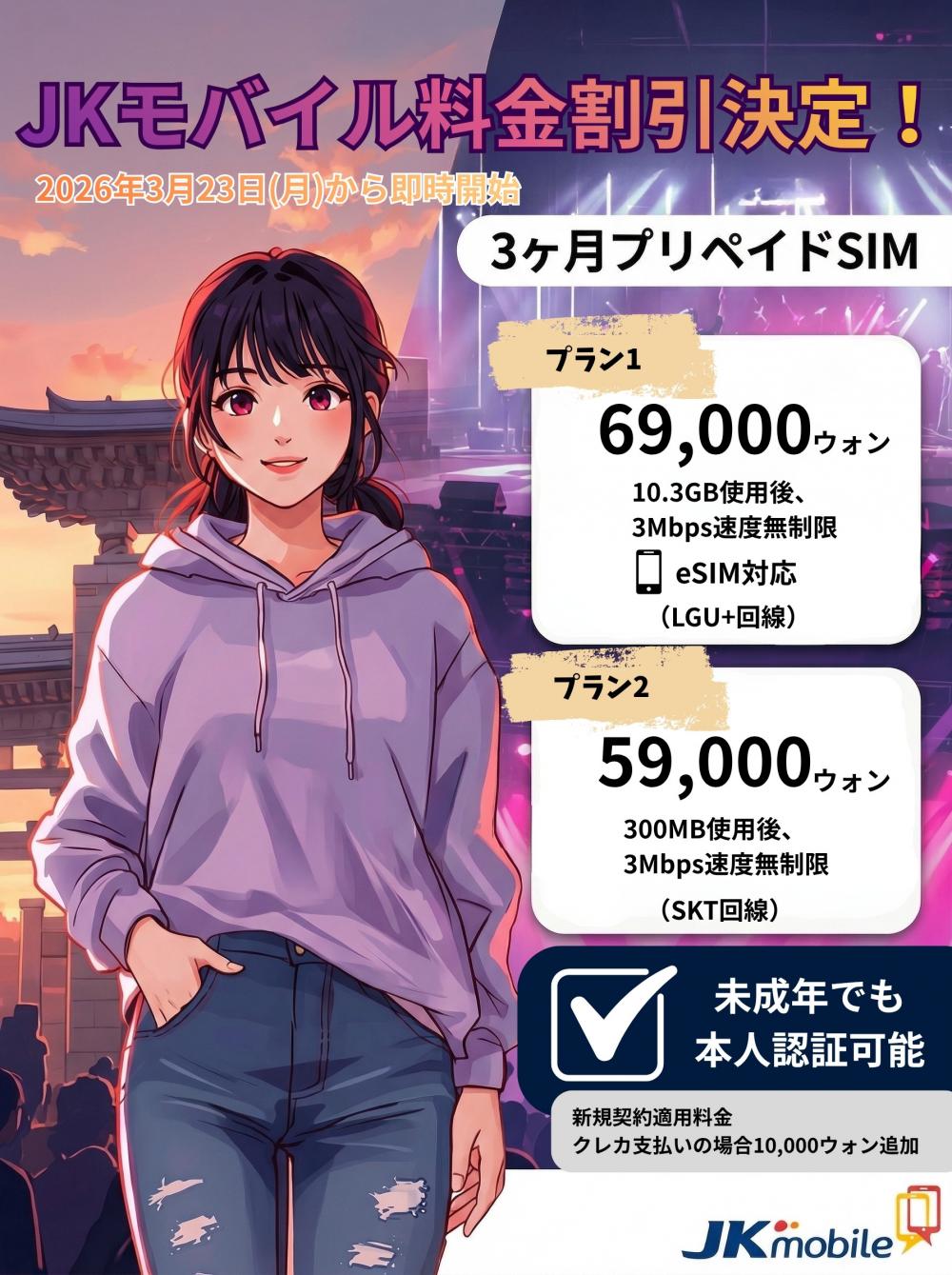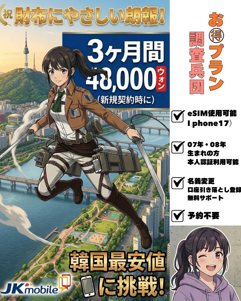 こちらのプランが気になる方は、KAKAO 友達追加→ ID:jkmobile79